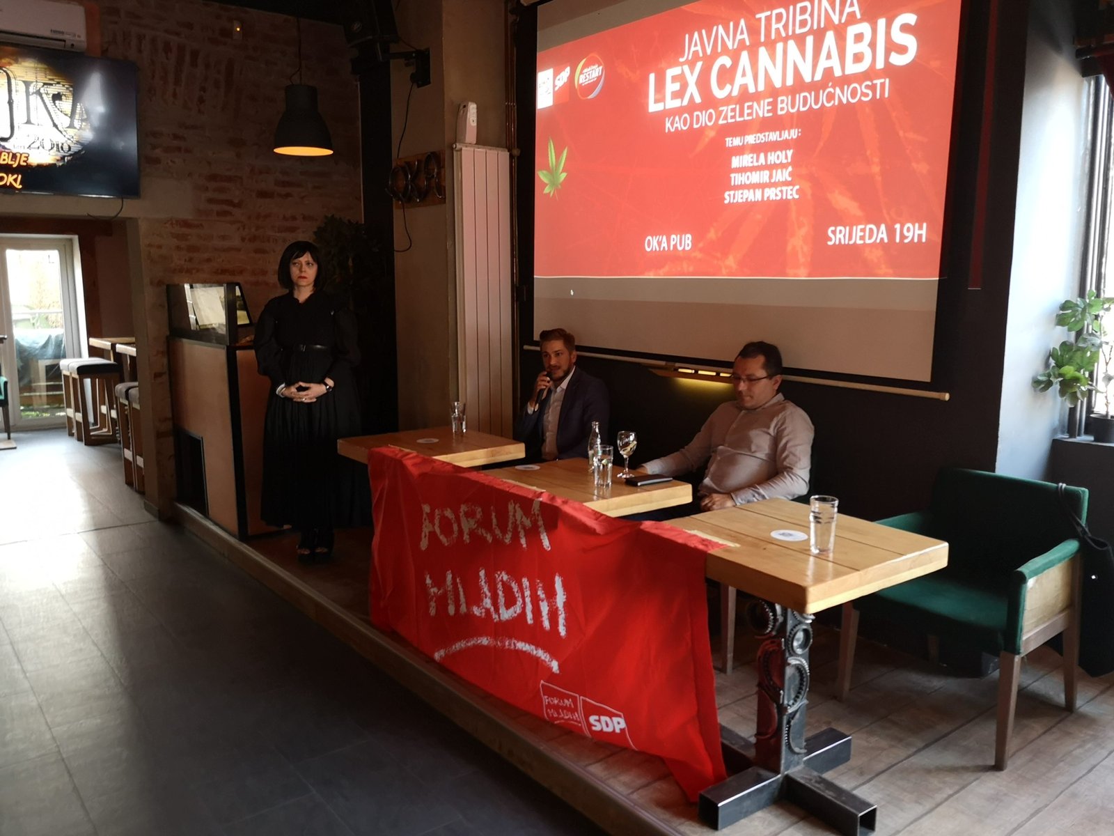U bjelovarskom ugostiteljskom objektu Oka pubu jučer je u 19 sati održana tribina Lex cannabis kao dio zelene budućnosti. Tribina je bila javnog karaktera, a organizirao ju je Forum mladih SDP Bjelovarsko-bilogorske županije. O Lex cannabisu govorila je Mirela Holy, inače na sedmom mjestu SDP-ove liste u II. izbornoj jedinici, Tihomir Jaić koji je 10. na listi SDP-a u II. izbornoj jedinici te Stjepan Prstec, predsjednik Foruma mladih SDP-a Bjelovarsko-bilogorske županije. Za one koji možda ne znaju, Mirela Holy je velika zagovornica pune legalizacije i liberalizacije konoplje u industrijske, medicinske, ali i rekreativne svrhe. Pojasnila je kako su države koje su legalizirale konoplju ostvarile velike pozitivne pomake na gospodarskom planu, a sve to je potkrijepila primjerima i brojkama. Osvoji li SDP vlast, inicijativa zvana Lex cannabis pretočila bi se u Zakonom o iskorištavanju punog potencijala konoplje koja je, kako se moglo čuti na tribini, ključna za poticanje bio ekonomije. Prema određenim procjenama, ova bi priča u idućih 10 godina mogla otvoriti velik broj radnih mjesta u različitim sektorima kružne i bio ekonomije, kao i podići produktivnost rada i resursa sa sadašnjih 13 tisuća eura dodane vrijednosti po zaposlenom na 41 tisuću eura dodane vrijednosti što je inače prosjek Europske unije. (ika)