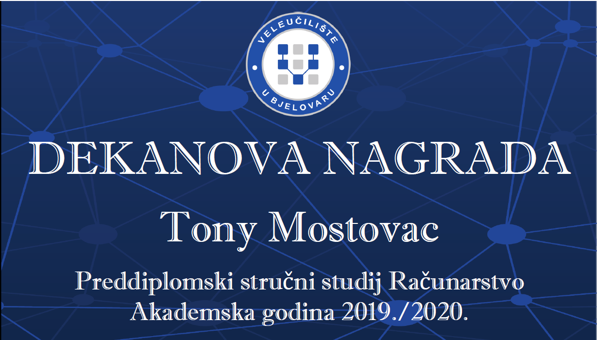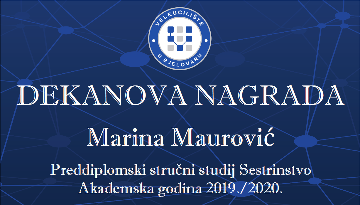 Nakon što je prije nepunih mjesec dana tek formalno obilježena 12. obljetnica osnutka Veleučilišta u Bjelovaru, jedine visokoobrazovne ustanove u gradu, jučer (ponedjeljak)je najboljim studentima u akademskoj godini 2019./2020. uručena i Dekanova nagrada.