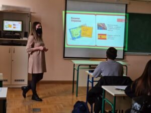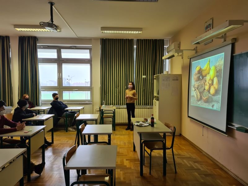 -“Ono si što jedeš! Znaš li što si?” koje je održala Nina Plažanin, prof. (Medicinska škola Bjelovar) za sudionike projekata “A sustainable table for multiculturalism and inclusion” i “Fundamentals of school partnership”. Učenike je upoznala s najvažnijim istinama i mitovima u prehrani te dala preporuke kako se zdravije hraniti.