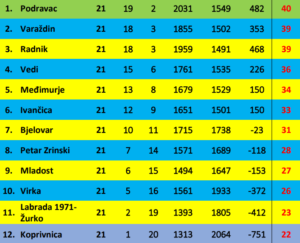 Košarkaši Druge lige sjever odigrali su predzadnje prvenstveno kolo u kojem je donesena odluka o prvaku. Za to su se pobrinuli košarkaši bjelovarskog Vedija koji su u derbiju kola s četiri koša razlike pobijedili ekipu Radnika iz Križevaca, što je najviše odgovaralo Podravcu iz Virja koji su porazom Križevčana kolo prije kraja osigurali naslov prvaka.