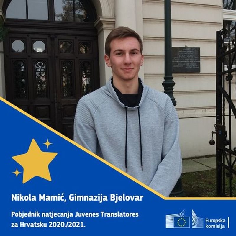 Pobjednik natjecanja #Juvenes Translatores za Hrvatsku 2020./2021. je Nikola Mamić, učenik Gimnazije Bjelovar.