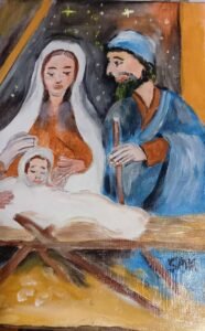 Radi se o slici ”Sveta obitelj” dimenzija 21×29,7 cm, ulje na platnu koju možete vidjeti ispod teksta.