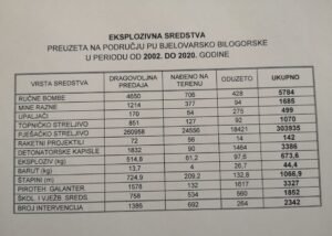Inače, područje pod ingerencijom PU bjelovarsko-bilogorske već se godinama nalazi u samom vrhu neslavne državne ljestvice po pitanju prikupljenih količina oružja. Županija je nekoliko puta bila uvjerljivi rekorder pa čak i po nekim zastrašujućim bizarnostima pa se tako još uvijek pamti događaj iz 2003. godine kada je jedan stariji gospodin dragovoljno predao dva raketna projektila 128 mm za višecijevni raketni bacač ”Oganj” duljine gotovo tri metra.