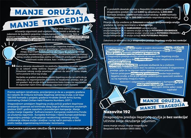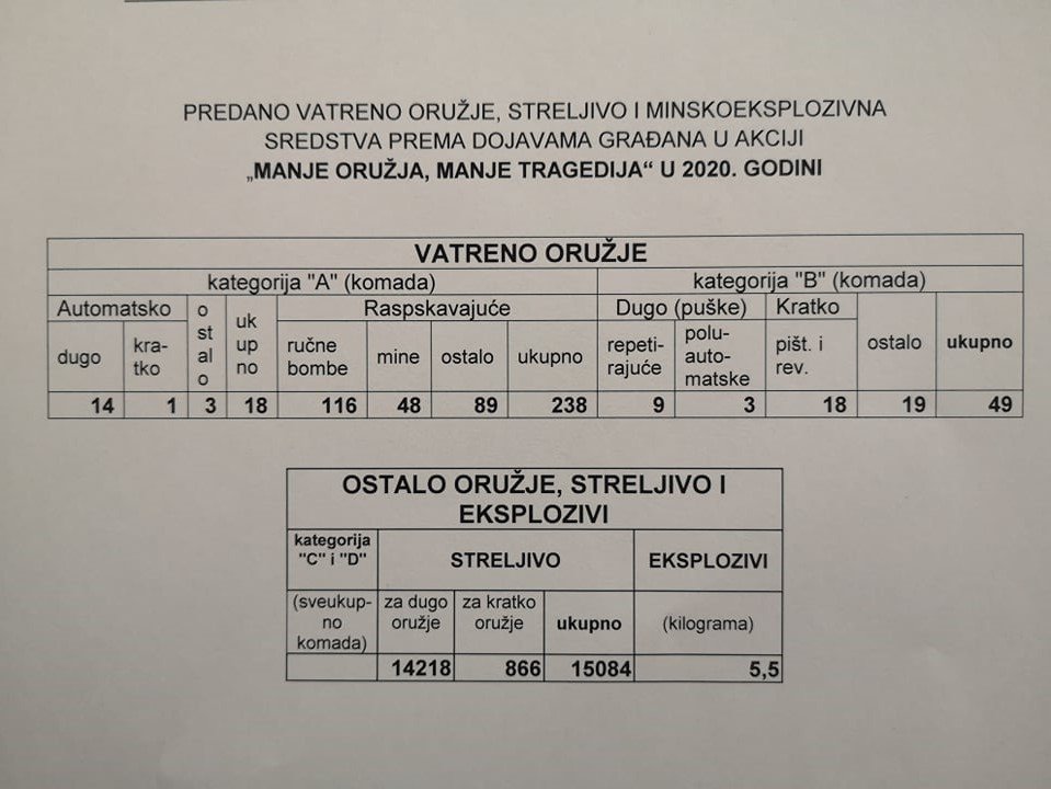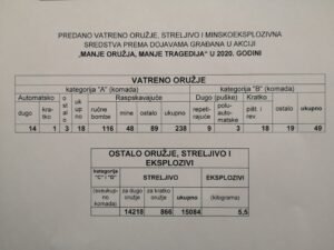 Uz statističke podatke dragovoljno predanog i pronađenog oružja, streljiva i eksplozivnih sredstava od 2002. do 2020. godine, predstavljeni su i novi preventivni alati kao i novi vizuale akcije, s ciljem da se šira javnost potakne na dragovoljnu predaju oružja te utječe na podizanje ukupne svijesti građana o opasnostima od nestručnog rukovanja tim oružjem i eksplozivnim sredstvima.