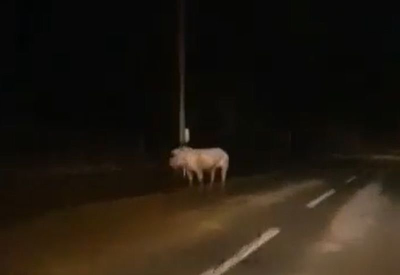 VIDEO – Naš čitatelj nabasao na svinju na cesti: ”Nisam se posebno iznenadio…”