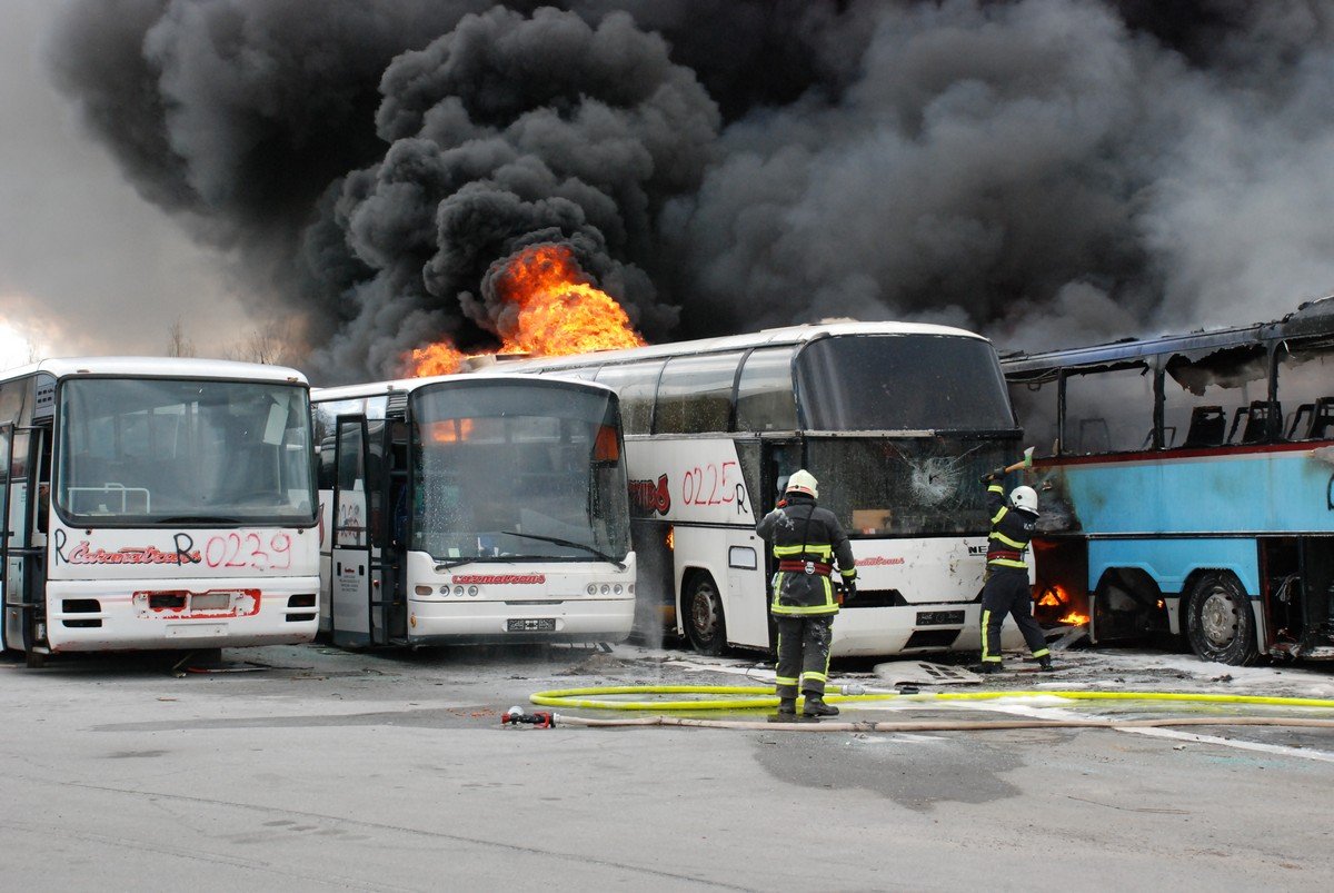 Veliki požar na parkiralištu čazmatransovih otpisanih autobusa
