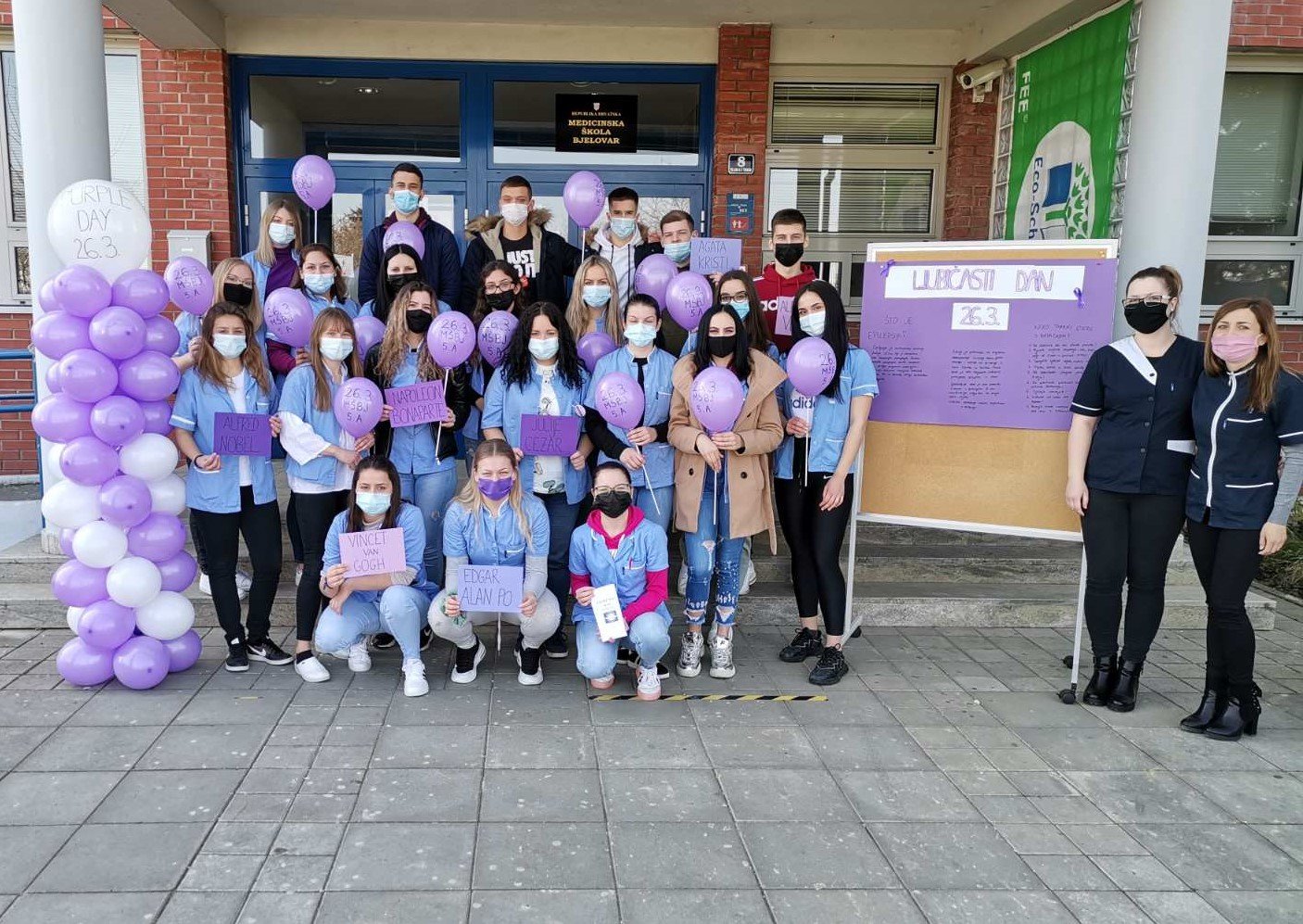 Učenici bjelovarske Medicinske škole sa svojim nastavnicama obilježili Ljubičasti dan