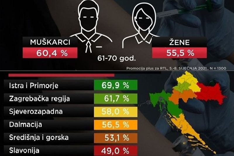 Novo istraživanje: Cijepiti se želi više od pola Hrvata, evo što kažu kontinentalci