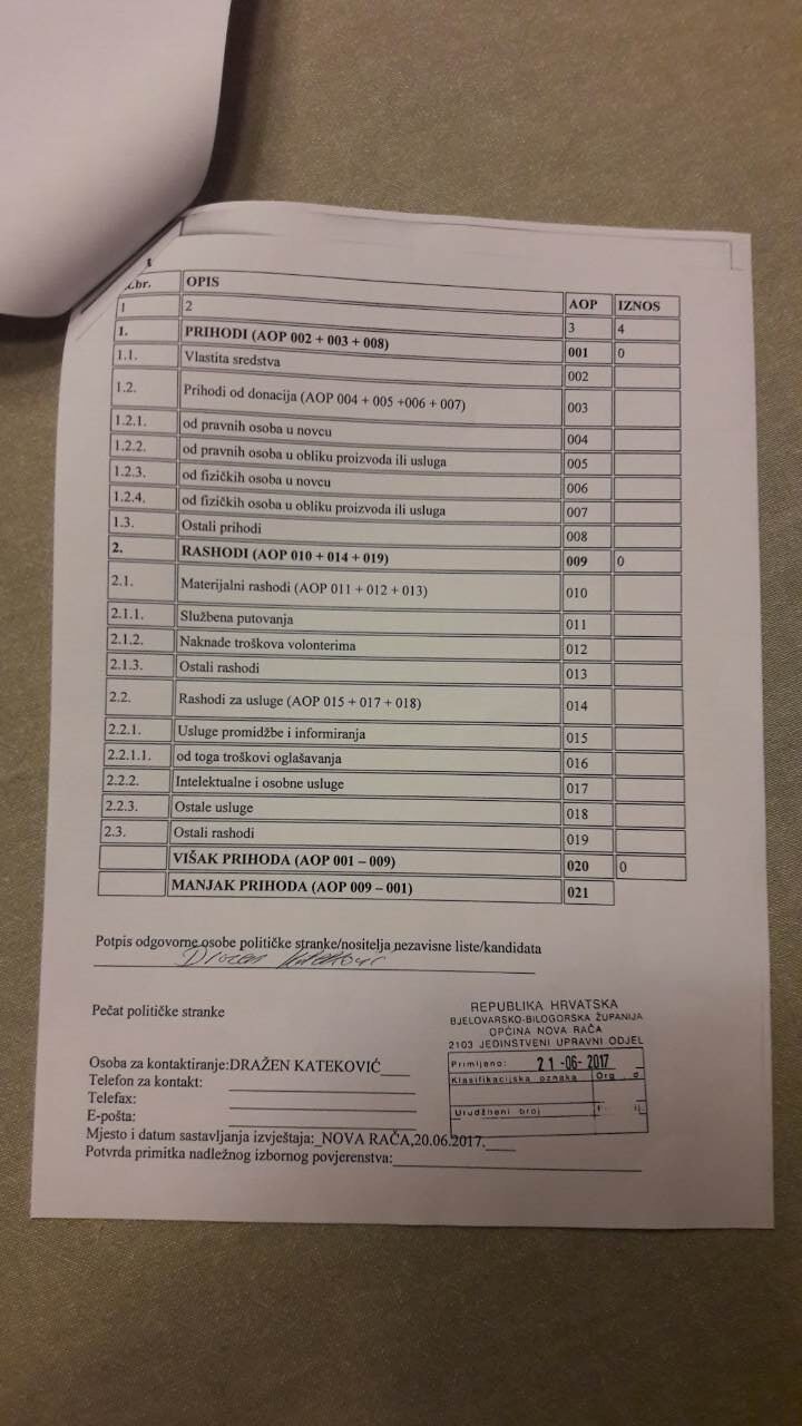 DRAŽEN KATEKOVIĆ:Objava Financijskog izvještaja o financiranju izborne promidžbe