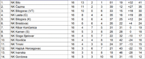 Kiša, hladno vrijeme i na momente olujni vjetar očito su pozitivno djelovali na nogometaše županijskih liga. U redovnom 16. kolu u sedam utakmica postignuto je čak 28 pogodaka što je četiri po utakmici, a pored toga pokazan je samo jedan crveni karton i to Dini Hadžijabdiću iz Ivanske, dok su suci dodijelili čak 21 žuti karton.