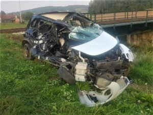 Kako doznaje Bjelovar.live koji je dobio fotografije uz dopuštenje čitatelja, vozačica se iz nekog razloga nije zaustavila ispred pružnog prijelaza koji nije osiguran rampom, već samo znakom ”Stop” i Andrijinim križem, ali je dovoljno pregledan. Zato pomalo i čudi kako vozačica nije uspjela vidjeti da joj s lijeve strane stiže putnički vlak koji se kretao put Kloštra Podravskog.