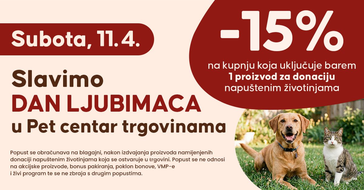 Iz Pet centra pozivaju sve ljubitelje životinja da u subotu posjete najbližu Pet centar trgovinu, uključe se u akciju i obilježe Dan ljubimaca uz dobro djelo koje ima stvaran utjecaj.