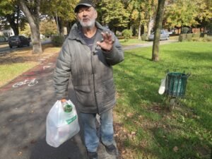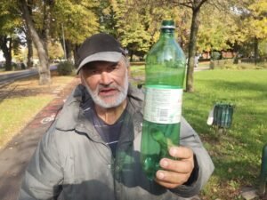 Gospodin s fotografije jedan je od najpoznatijih bjelovarskih skupljača plastičnih boca i limenki, a dobar dio Bjelovarčana prepoznat će ga kao osobu koja je nezaobilazni dio ”ekipe s klupe’”