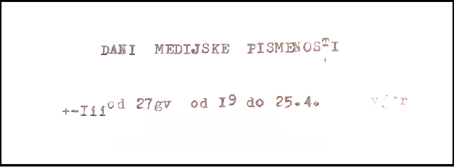 Interaktivnom izložbom o tradicionalnim i suvremenim medijima uz pomoć materijala naše školske knjižnice i Državnog arhiva Grada Bjelovara prikazali smo djeci razvoj medija kroz povijest te koje još medije mogu koristiti u svojoj školskoj knjižnici. Bio je tu stol koji je prikazivao audio kazete, gramofonske ploče i glazbene CD–e uz radio i gramofon na kojem su svirali stari singlovi Novih fosila i Sedmog kontinenta, pjesme festivala djeteta u Šibeniku iz 1982. Zatim stol s laptopom koji je prikazivao stare naslovnice bjelovarskih novina i časopisa iz opusa Gradskog arhiva, uz prikaz starih i novih vanjskih uređaja za pohranu–diskete, CD–rom, DVD–rom, USB i vanjski hard disk.