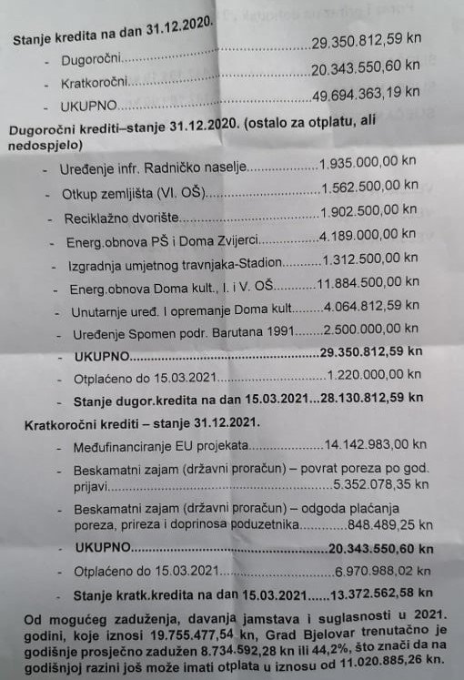 -Dugoročni krediti iznose 29 milijuna kuna. Kratkoročni krediti iznose 20 milijuna s tim je već otplaćeno skoro 7.000.000,00 kuna, a to sve je novac kojim smo gradili i građevinskim tvrtkama sve platili da bi mogle opstati. Zato smo na sebe preuzeli obvezu kratkoročnih kredita, a to će nam se kroz nekoliko mjeseci vratiti od države. Dakle, treba nam biti vraćeno 20 milijuna kuna i govorimo 30 milijuna kuna ukupne zaduženosti – kazao je Hrebak.