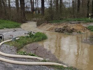 Obilne padaline koje su danas pogodile bjelovarsko područje izazvale su ozbiljne probleme i u Lugu, gdje je nabujali potok Bjelovacka kod Ulice Put žrtvama prijetio obiteljskim kućama i izazvao veliku zabrinutost među mještanima.