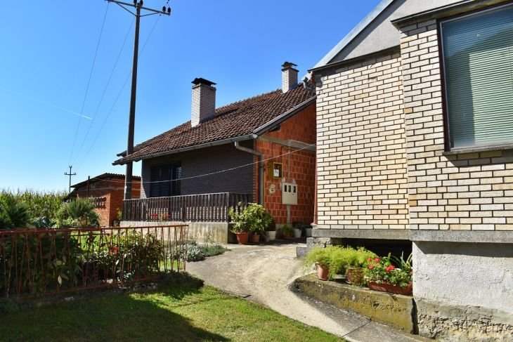Kuća u nastavku parcele građena je 1984 godine, zidana, lijepog modernog tlocrta ( open space ) a sastoji se od ulaza, WC-a, prostranog dnevnog boravka s galerijom. U prizemlju je i kuhinja i blagovaonica. Na galeriji su dvije spavaće sobe i kupaonica. Spavaća soba ima balkon a kuhinja izlaz na lijepu terasu. Kuća se grije centralnim plinskim grijanjem i kaljevom peći na kruta goriva. Uređena je i održavana, te se prodaje potpuno namještena. Iza kuće nalaze se pomoćne prostorije sa spremištima.