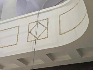 – Iznutra je obnovljen mozaik koji se nalazi na drvenoj podlozi na kojoj je trstika, no naši specijalisti su to odradili vrlo uspješno. Na vanjskoj fasadi imamo obnovu maskerona za što su pripreme bile dosta zahtjevne. Maskeron se nakon lijevanje više ne obrađuje zbog čega smo morali pogoditi točnu recepturu, teksturu i završnu obradu što je bio jedan kompleksan postupak, unikatan – istaknuo je Belčić.