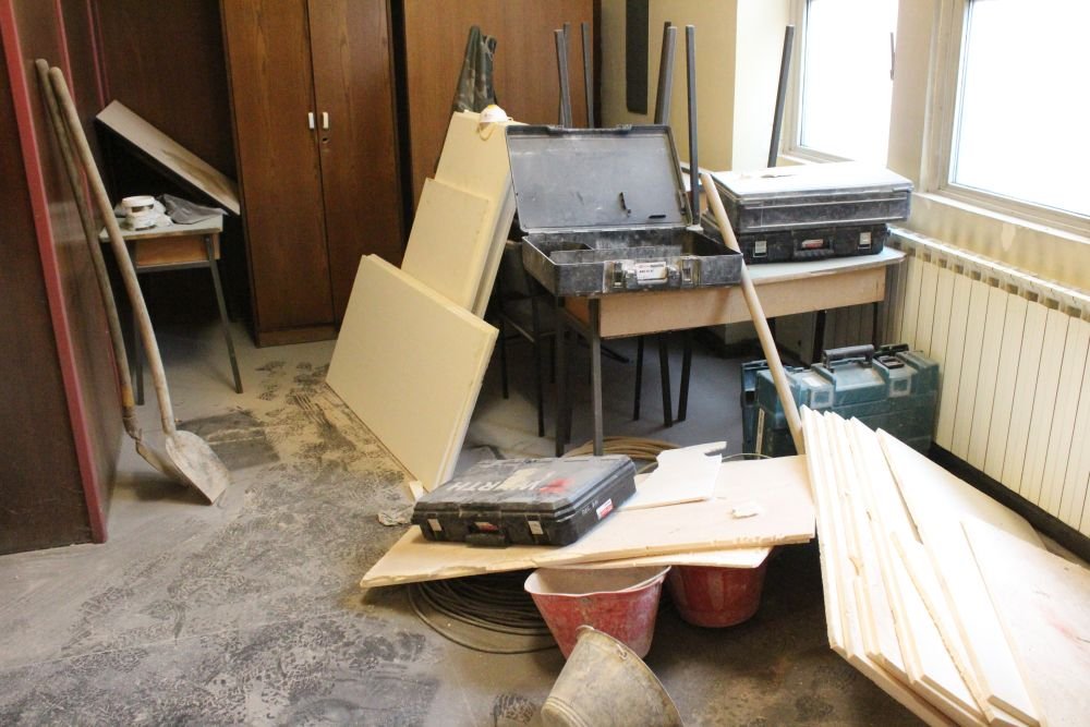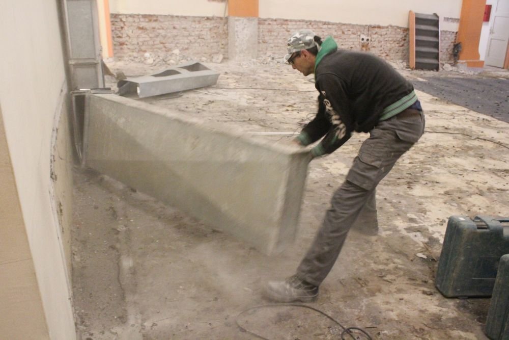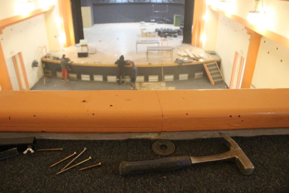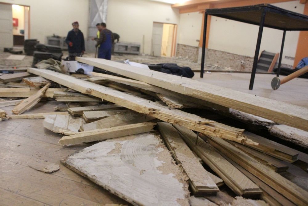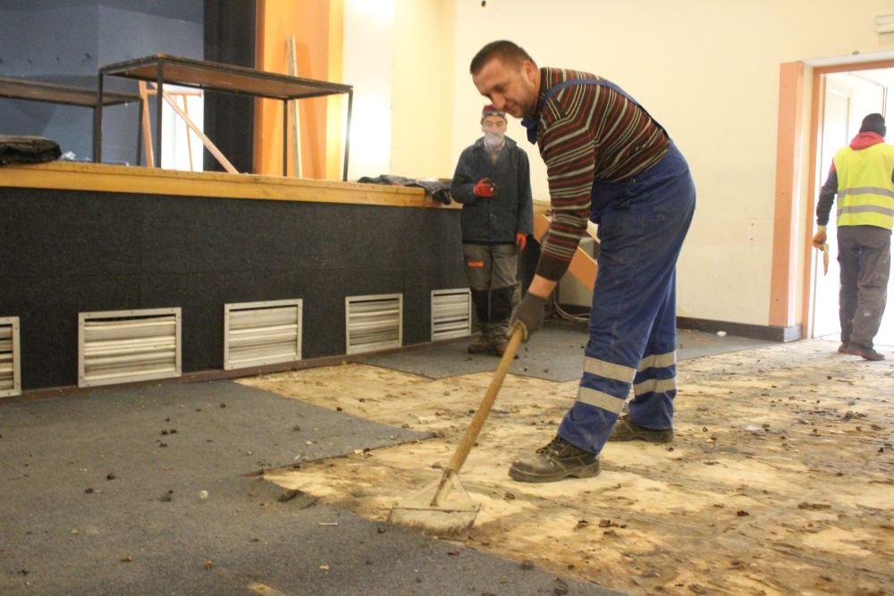 Danas u jutarnjim satima započeli su radovi u unutrašnjosti bjelovarskog Doma Kulture. Dok dio radnika trga i odnosi sjedalice, ostatak sa zidova oprezno skida zvučnike i reflektore. Trga se i cijela pozornica, parket…, gusta prašina je ispunila dvoranu u kojoj umjesto glazbenih instrumenata i aplauza odjekuju zvuci bušilica, brusilica i udarnih čekića. Riječ je o pripremama za početak zahtjevnih građevinskih radova unutar jedne od bjelovarskih kolijevki kulture.