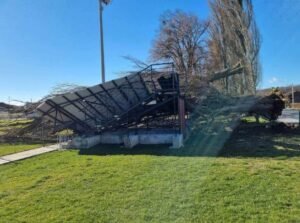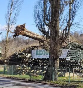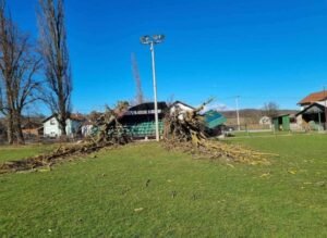 Stablo se, eto, srušilo na tribinu koja se nalazi pored igrališta te ju u potpunosti uništilo.