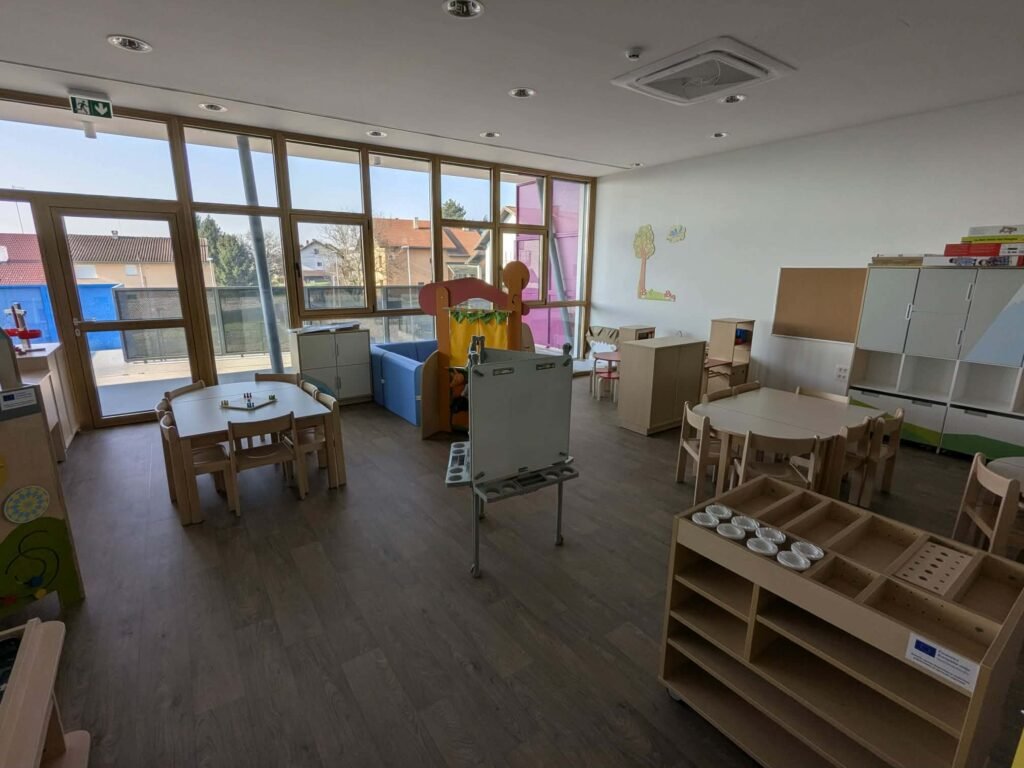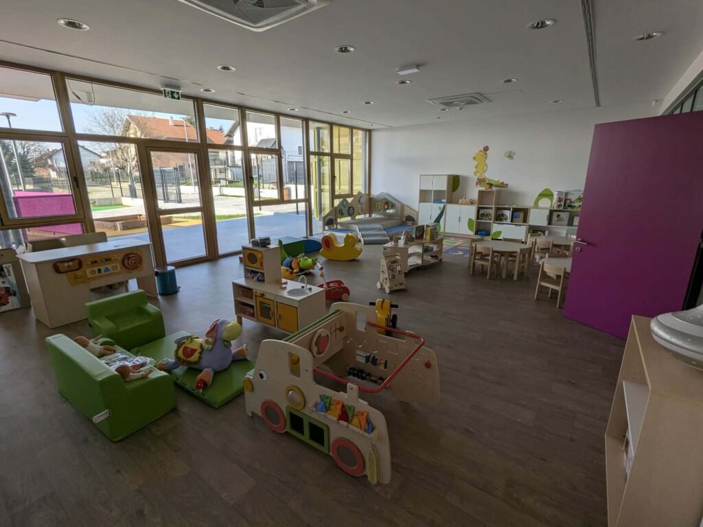Objekt je opremljen modernom opremom, a posebna pažnja posvećena je uređenju vanjskog prostora s igralištem i zelenim površinama kako bi djeca imala sigurno i poticajno okruženje za igru i boravak na otvorenom. U gradu su istodobno planirani i drugi projekti izgradnje i proširenja vrtića, s ciljem potpunog uklanjanja lista čekanja.