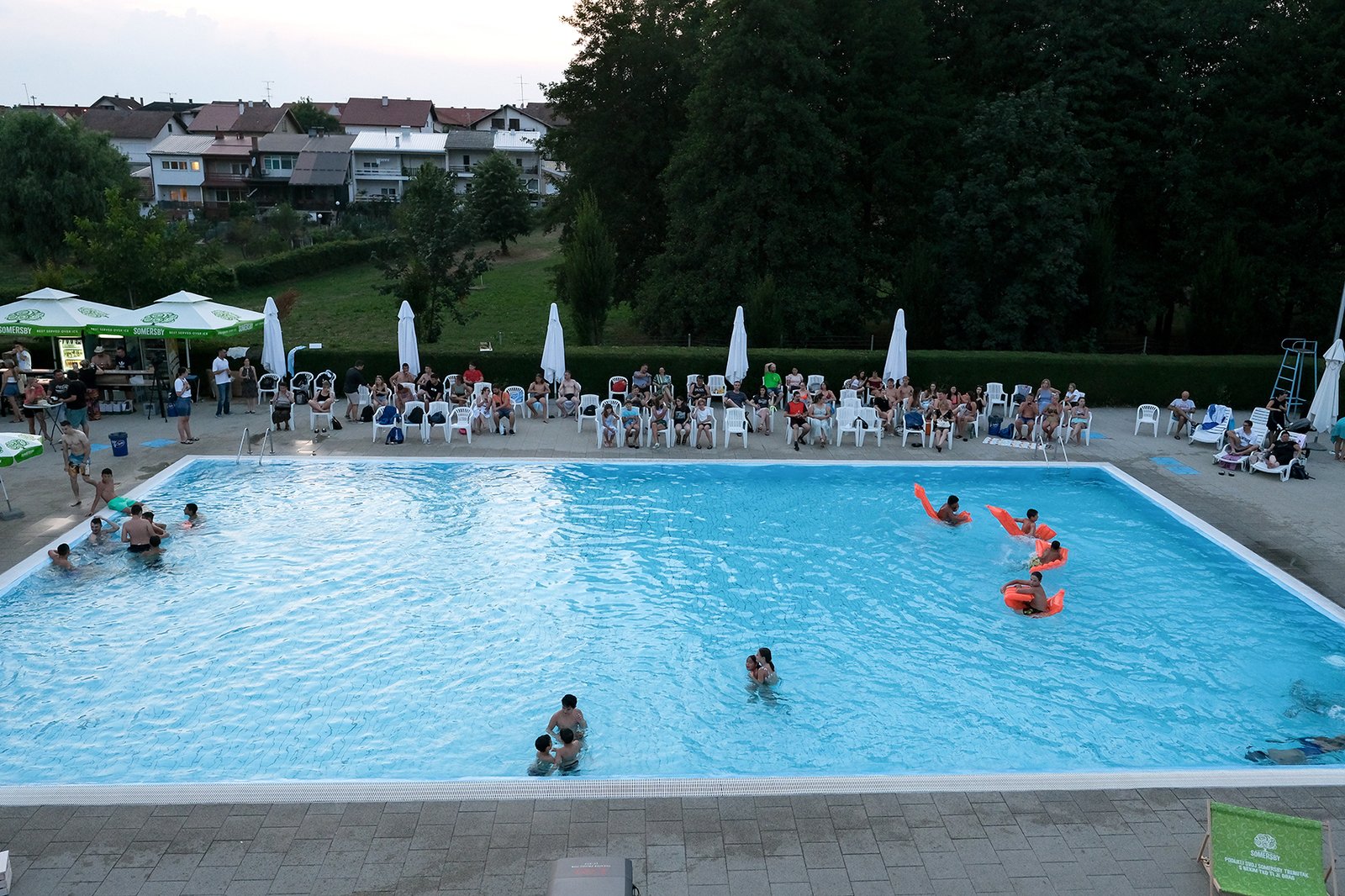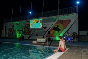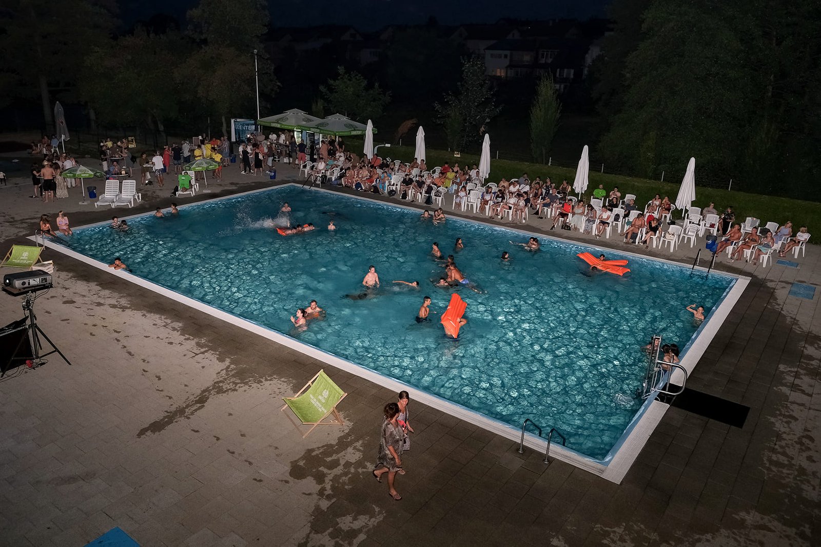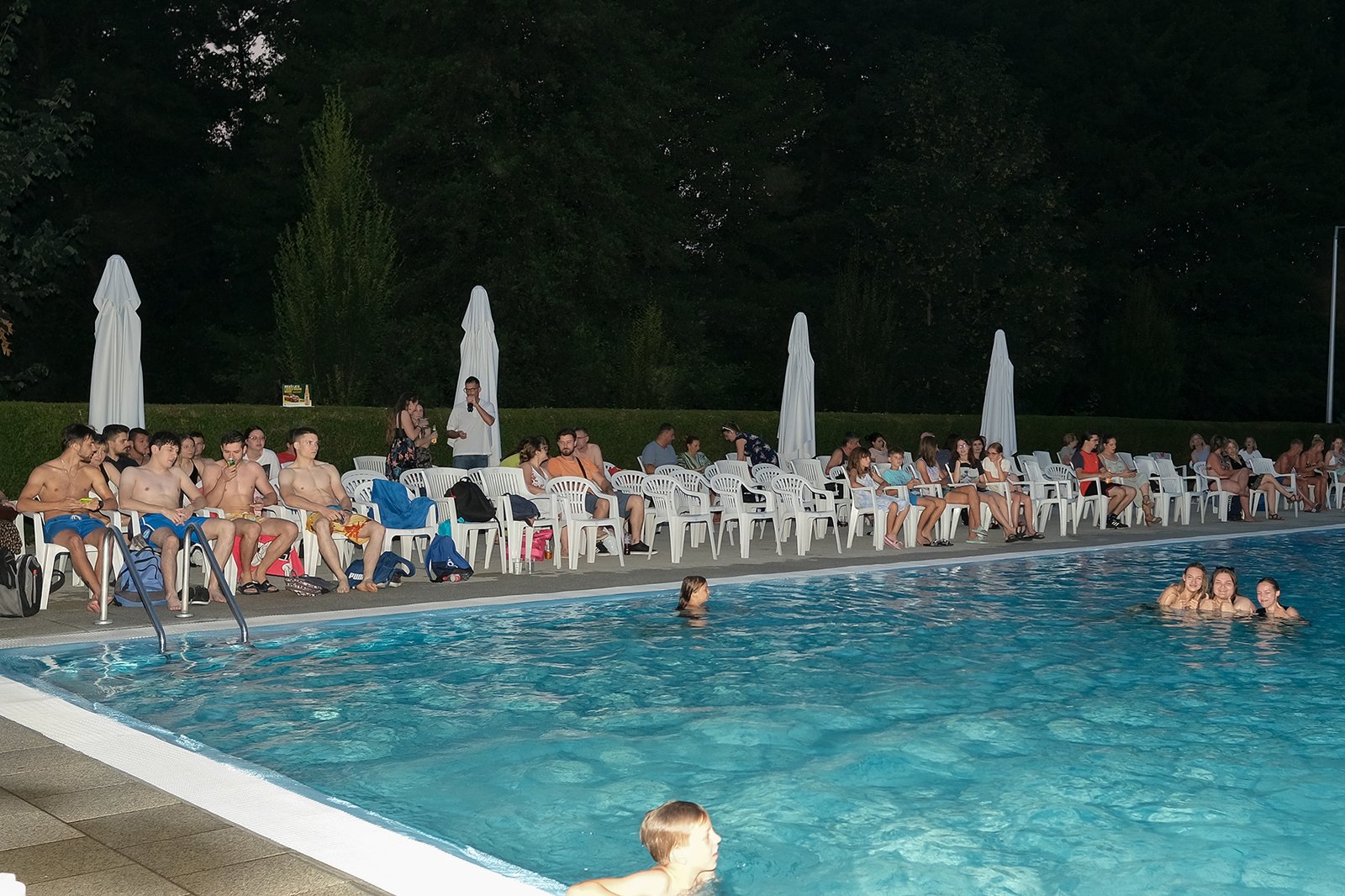 Posjetili su mogli uživati u hladnim napitcima i odbojci u bazenu, a sve začinjeno dobrom mjuzom za koju se pobrinuo DJ Mario sa svojim Retro i Funky partyjem,Oko 21 sat je puštena projekcija akcijske komedije ”Čuvaj me s leđa 2”, a potom je uslijedio nastavak druženja uz Dj Marija i razna osvježenja.