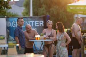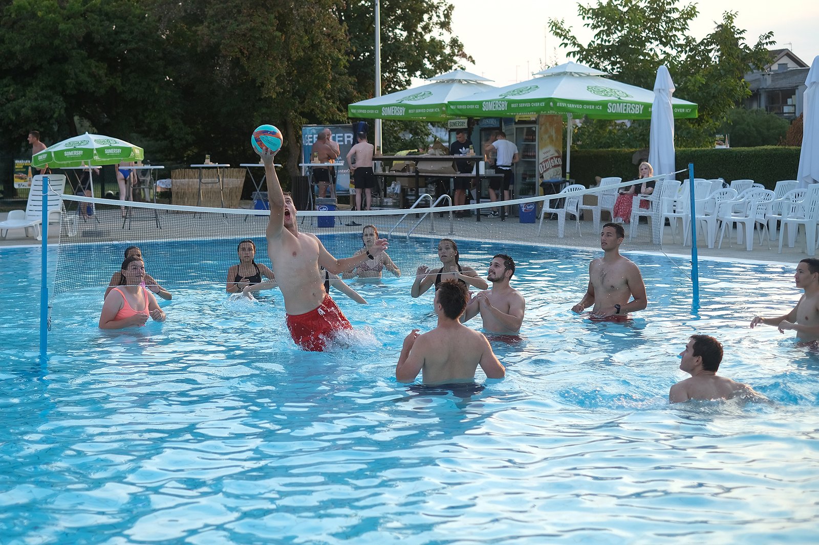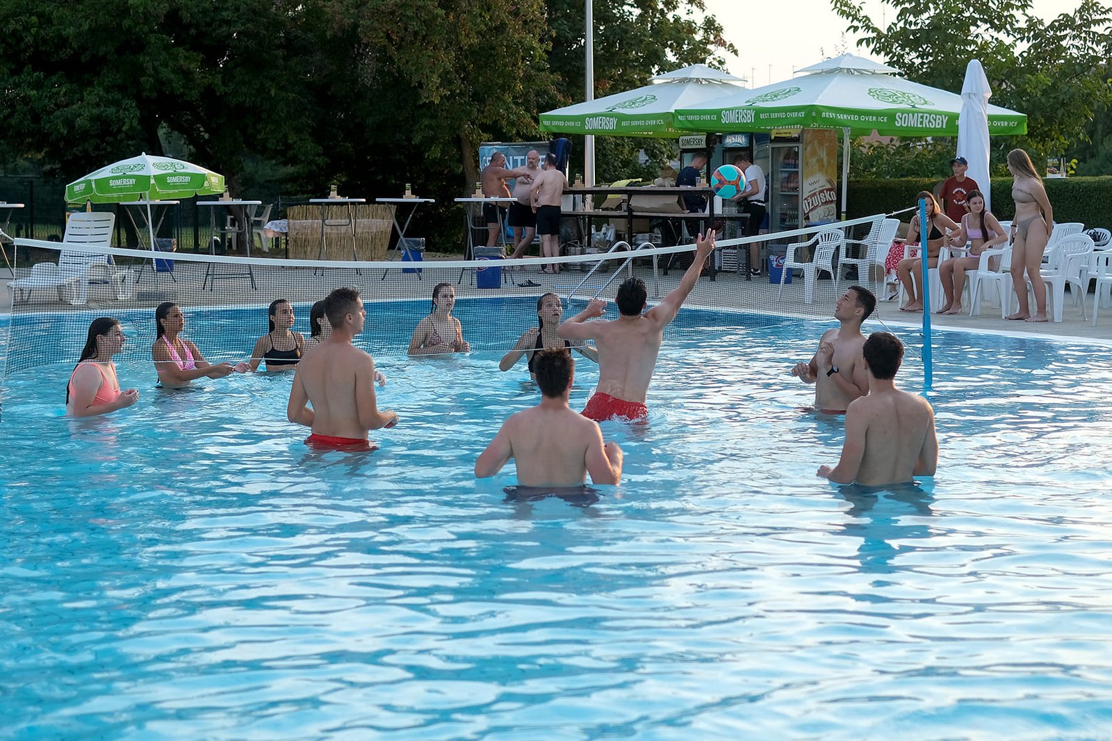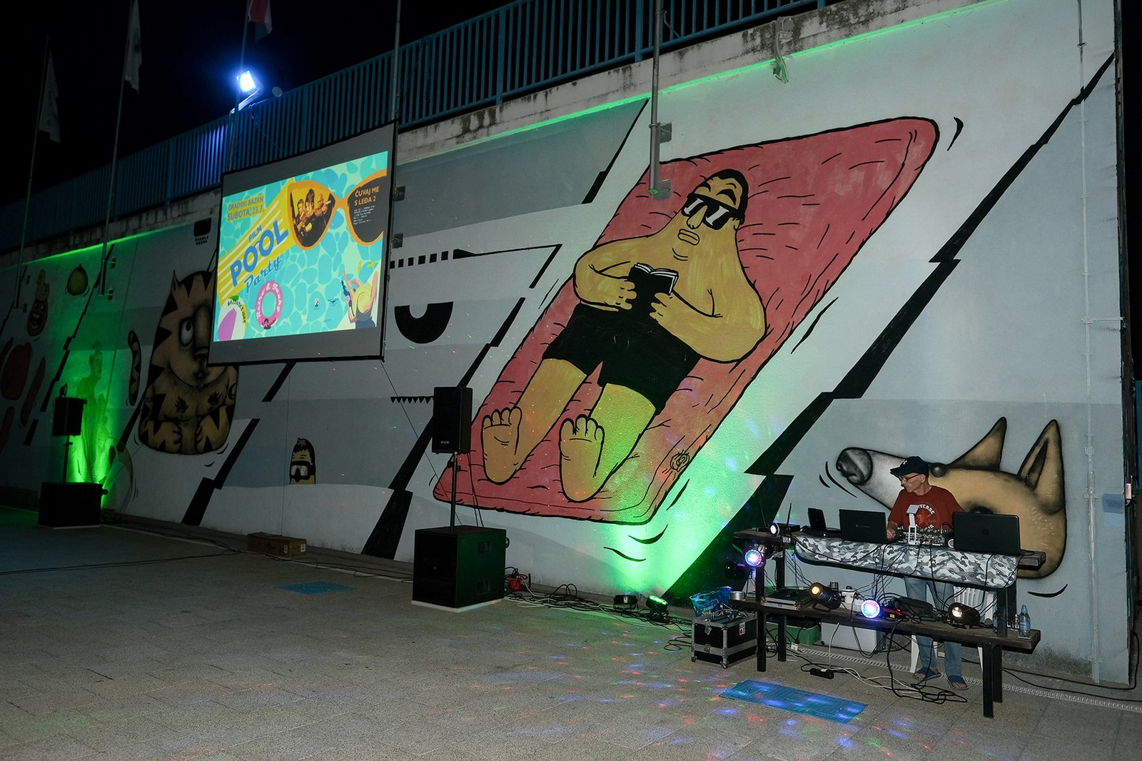 Posjetili su mogli uživati u hladnim napitcima i odbojci u bazenu, a sve začinjeno dobrom mjuzom za koju se pobrinuo DJ Mario sa svojim Retro i Funky partyjem,Oko 21 sat je puštena projekcija akcijske komedije ”Čuvaj me s leđa 2”, a potom je uslijedio nastavak druženja uz Dj Marija i razna osvježenja.