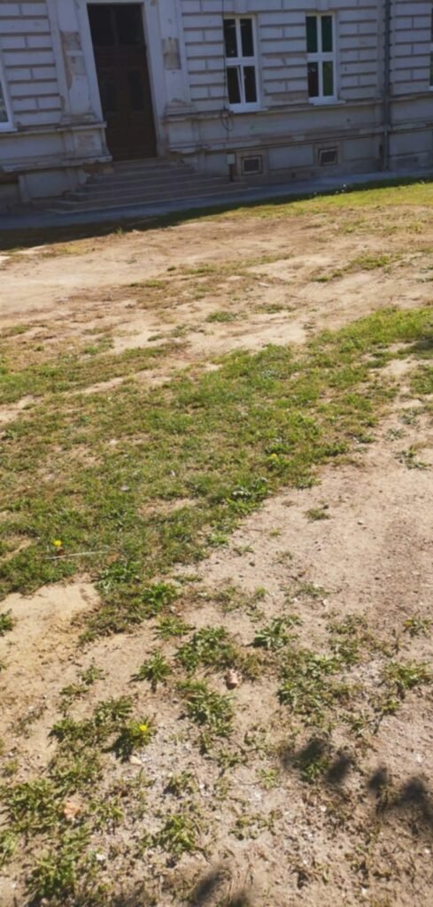 – U ovakvom stanju je ostala zelena površina ispred objekta stare gruntovnice koja je dio Županijskog suda u Bjelovaru. Tvrtka koje je renovirala zgradu suda ovdje je imala skladište, umjesto da ono bude u dvorištu. Postoji neiskorišten prostor kod dijela Trgovačkog suda gdje je mogao biti odložen materijal i to ne bi pričinjavalo sigurnosni problem Zatvoru koji je, jasno, pod nadzorom- kazao nam je čitatelj.