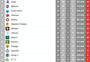BJELOVAR: Mudrinjak 2, Rukhadze, J. Čulo 2, Ač, Flanjak 1, Švenda 2, Komar 1, Juras 1, Bura 7, Ivanić 2, Velić 1, Saraja 1, Mihailić 3, Grizelj 4, M. Kozić 3, Buljina 3. TRENER: Goran Višić