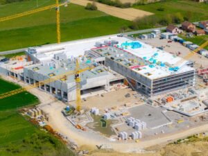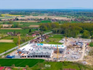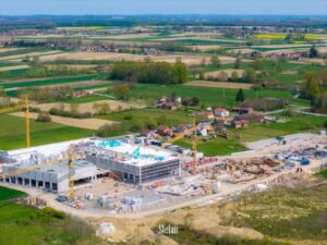 Bjelovarske Terme – Wellovar iz dana u dan sve jasnije potvrđuju svoj status jednog od najvećih i najiščekivanijih projekata u ovom dijelu Hrvatske. Najnovija fotografija iz zraka, koju je dronom snimio Štefan Brajković, zorno prikazuje impresivne razmjere cijelog kompleksa.