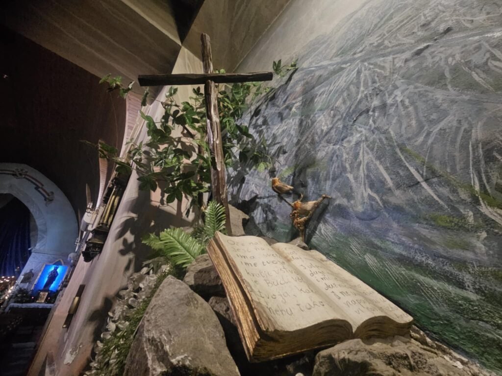 Blagdanski ukrasi pažljivo su uklopljeni u prostor, bez kiča i pretjerivanja, stvarajući ozračje sabranosti, molitve i tišine. Ovo je mjesto koje poziva na zastajanje, osobnu molitvu i ispovijed, daleko od svakodnevne žurbe.