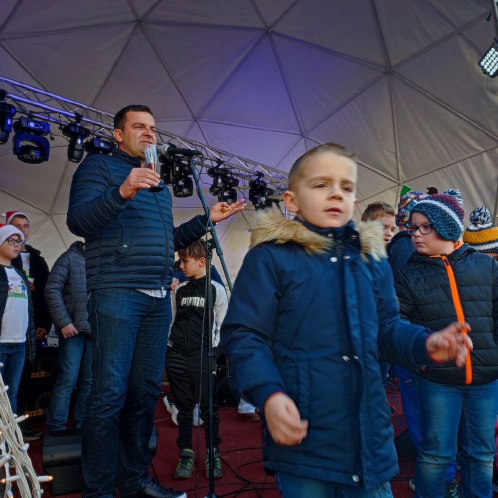 Čestitku mnoštvu okupljenih uputio je predsjednik Dječjeg gradskog vijeća Luka Šimunović, tako da je gradonačelniku Dariju Hrebaku preostalo tek sugrađanima i sugrađankama uputiti zdravicu uz dječji šampanjac.