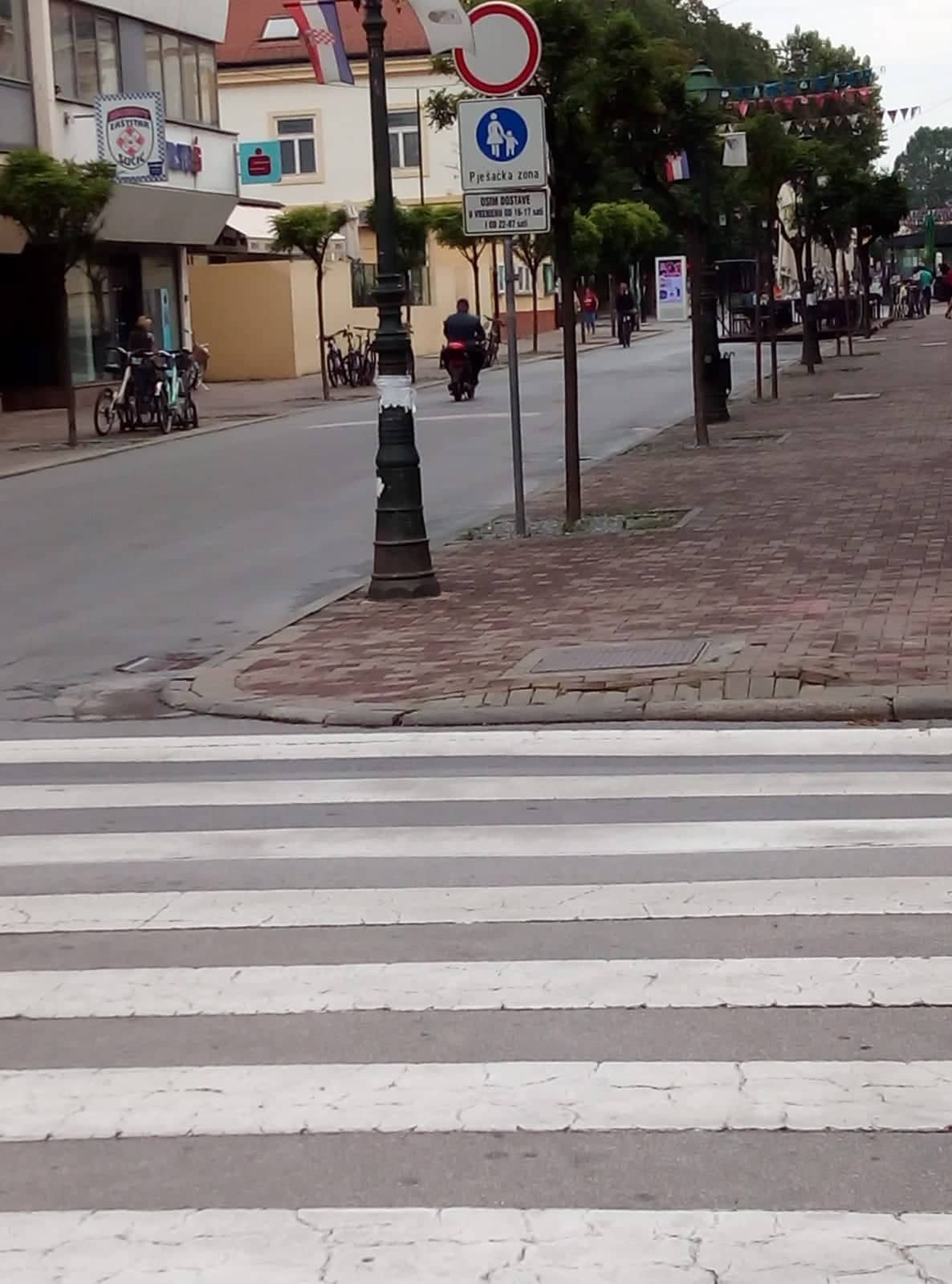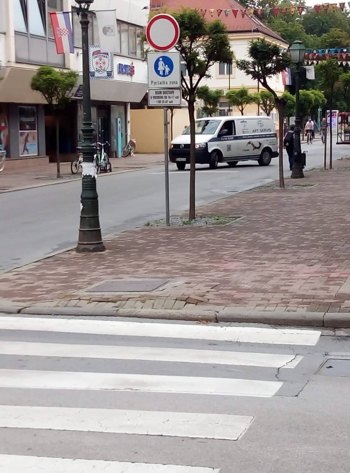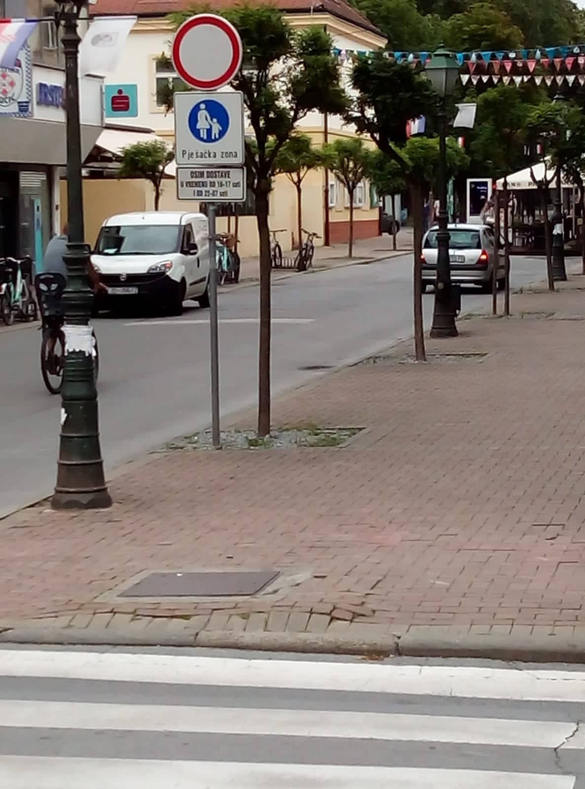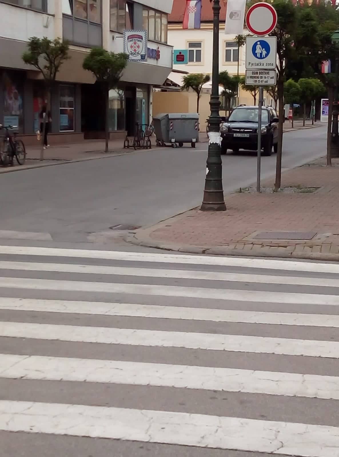 Prometni znak ”Zabrana parkiranja u oba smjera”, potom onaj ”Pješačka staza” uz vidljivo istaknutu obavijesnu tablu koja se tiče dostavnih vozila, pričaju vrlo jasnu priču. Toliko jasnu da jasnija ne može biti.