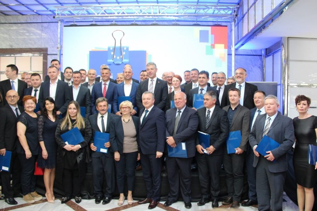 U Ministarstvu gospodarstva, poduzetništva i obrta u Zagrebu, jučer je svečano upriličena dodjela Odluka o financiranju projekata temeljem Poziva Razvoj infrastrukture poduzetničkih zona iz programa Konkurentnost i kohezija.
