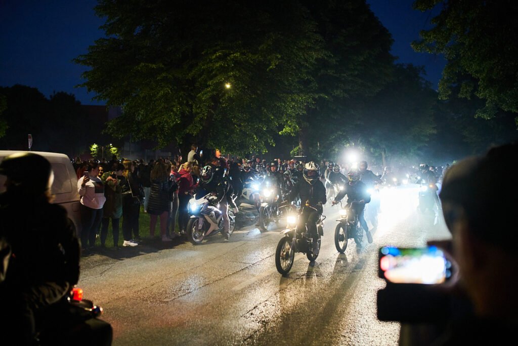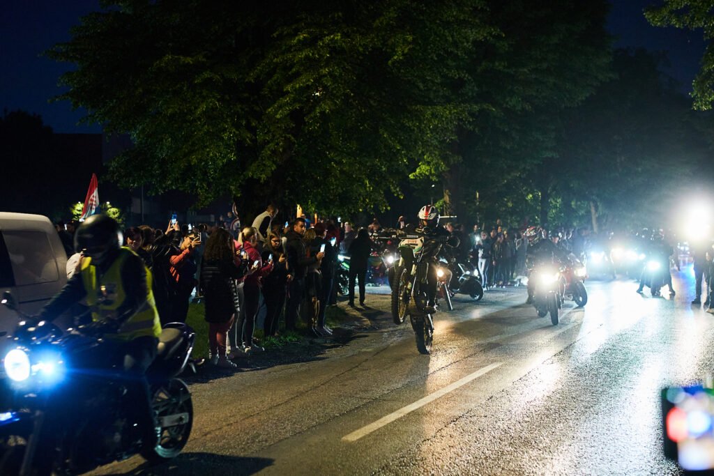 Već od četiri sata ujutro trajalo je okupljanje ispred Dvorane europskih prvaka, a točno u pet sati je počelo buđenje Bjelovarčana u velikoj motorističkoj povorci.
