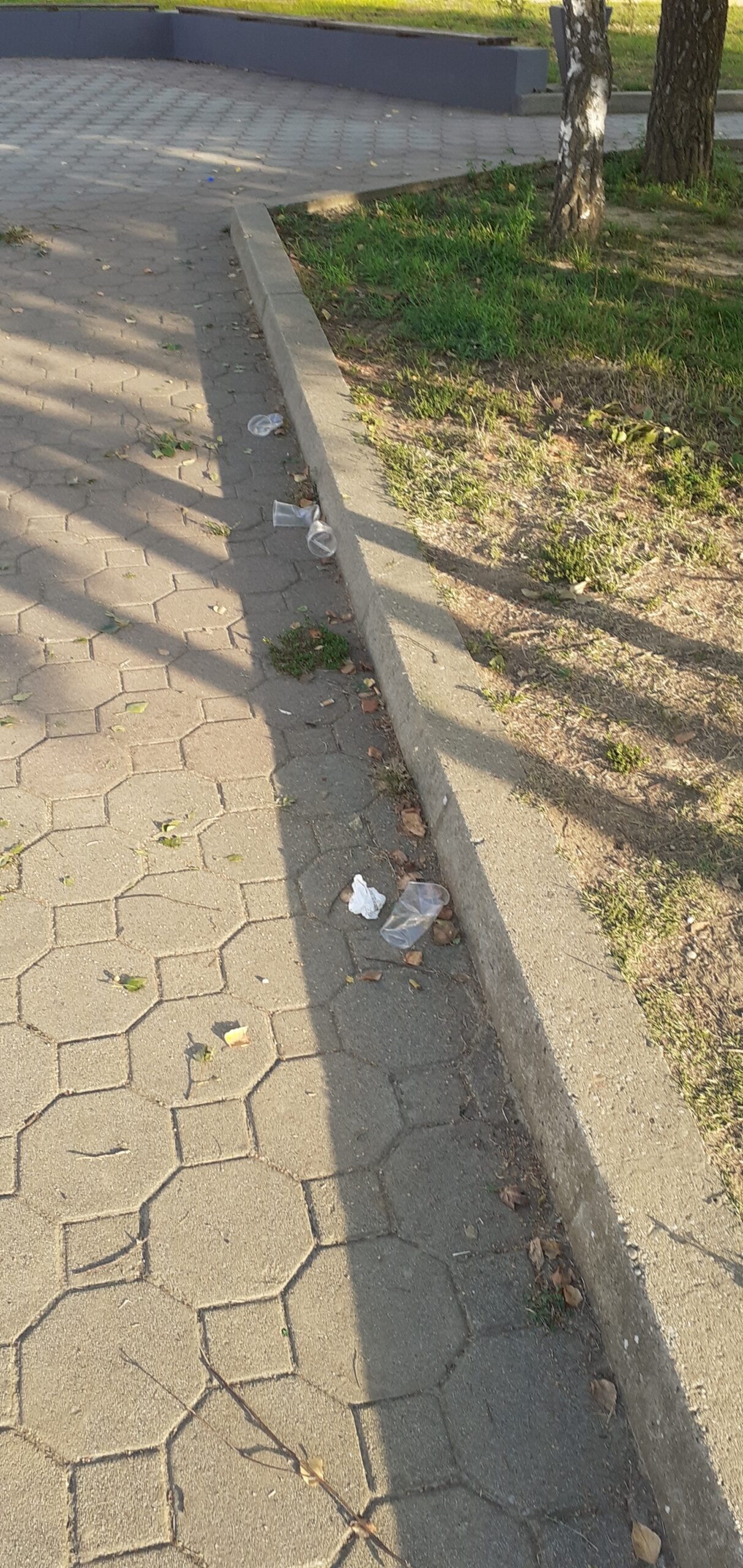 Na fotografijama koje nam je poslao mogu se vidjeti odbačene plastične čaše kako leže na tlu oko dvije klupe, uokolo razbacana razna ambalaža, tu i tamo izgužvana kutija cigareta, potrgane grane stabala koje krase okoliš škole i metalni stup na kojem se vjerojatno nalazio koš za smeće.
