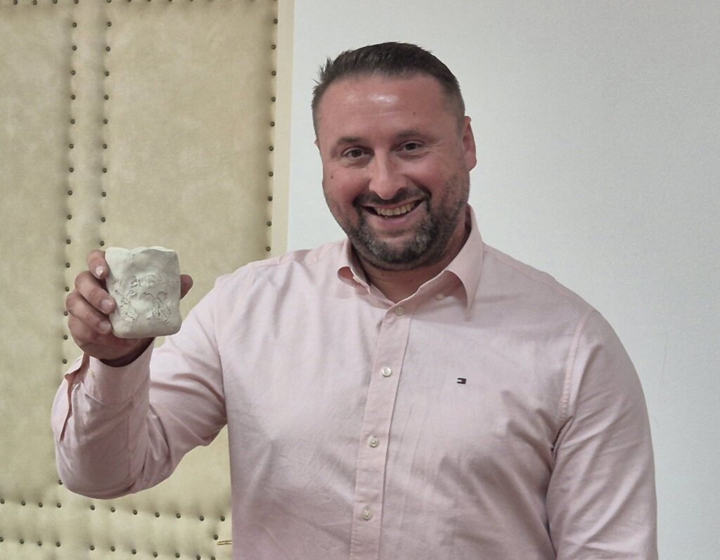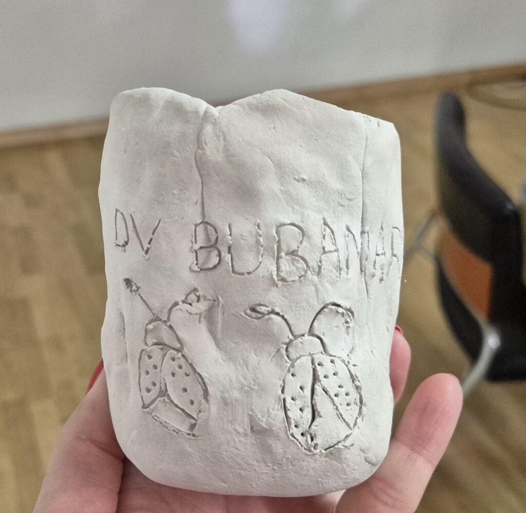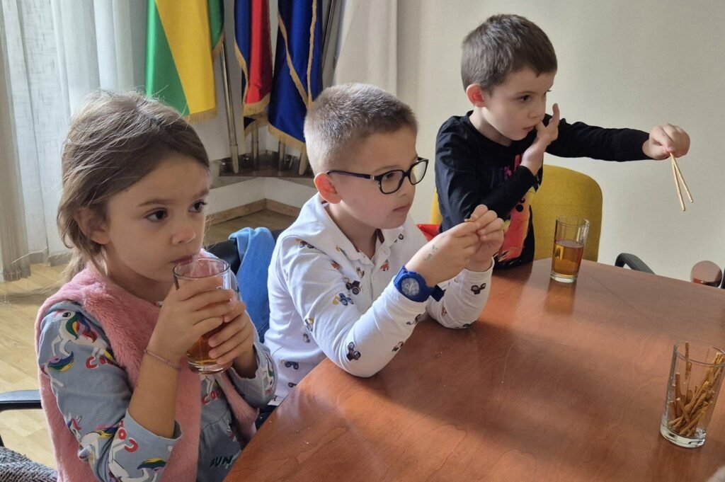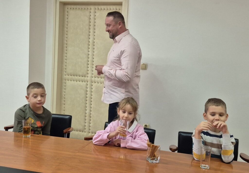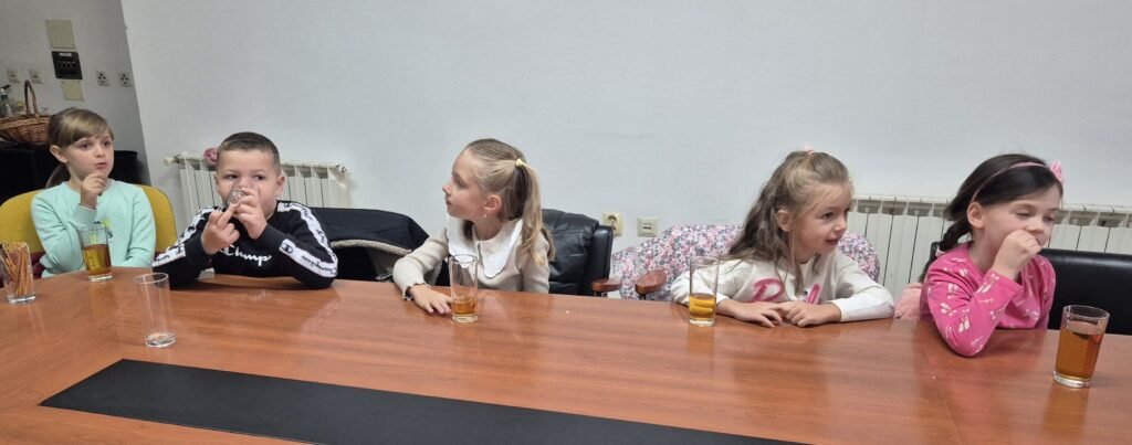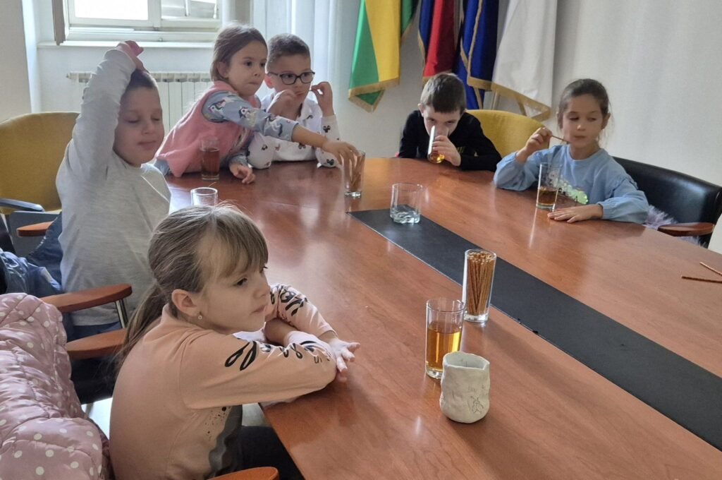 A ovi mali ljudi znaju i za pristojnost i red. Ne samo da su u Gradsku upravu ušli u redu i tišini, već su domaćinima donijeli i poklon. ovog puta bila je glinena šalica koju su izradili vlastitim rukama i na nju upisali ime svog vrtića. Svoj unikatni ručni rad darovali su dogradonačelniku Brajdiću koji će ga sigurno čuvati na posebnom i dragom mjestu.