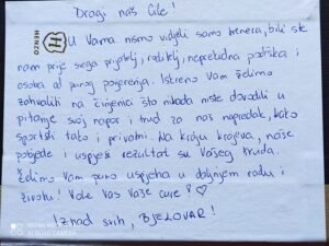 Djevojke su napisale i pismo u kojem, između ostalog, stoji da u Cikoji nisu vidjele ”samo trenera, bili ste nam prije svega prijatelj, roditelj, neprekidna podrška i osoba od punog povjerenja”.