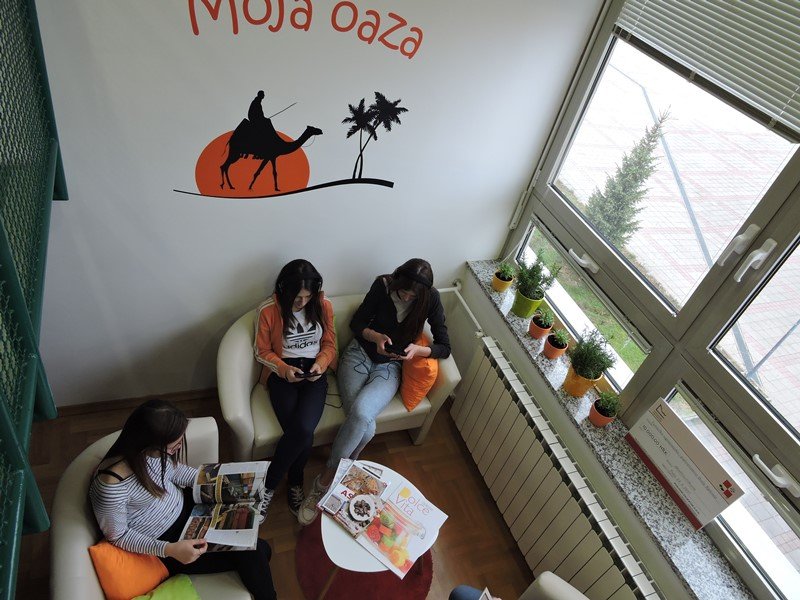 -Sve veći problem onih koji se bave odgojem i obrazovanjem je odgovor na pitanje kako mlade potaknuti na kvalitetno provođenje slobodnog vremena te kako im ponuditi edukativne sadržaje u njima prihvatljivoj i zanimljivoj formi. Kako naši učenici uz redovnu, pohađaju i praktičnu nastavu te je velik broj učenika putnika, često dolaze u školu prije vremena. Škola ima i razrede s učenicima koji se školuju za pomoćna zanimanja te je njima potreban poseban, individualizirani pristup. Iz tog razloga smo osmislile projekt ”Moja oaza” s ciljem stvaranje neformalnog kutka u školskoj knjižnici (drugačijeg od tipičnog čitaoničkog tipa), kako bi mladi provodili više slobodnog vremena čitajući stručne, zabavne časopise, zabavnu literaturu i određene probrane sadržaje s interneta te slušajući glazbu pomoću slušalica, a tako na trenutak i predahnuli od školskih obaveza–kazale su autorice projekta.