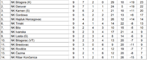 Gordowa pomalo gubi korak s vodećima, što je potvrdila novim porazom u Gudovcu gdje je od Laste izgubila rezultatom 3:1, Trnski iz Nove Rače vezao je dvije uzastopne pobjede kojima se približava gornjem domu ljestvice, dok Hajduk iz Hercegovca usprkos najavama kako ide u borbu za naslov prvaka u završnici prvenstva bavi se prosipanjem bodova i poniranjem na tablici.