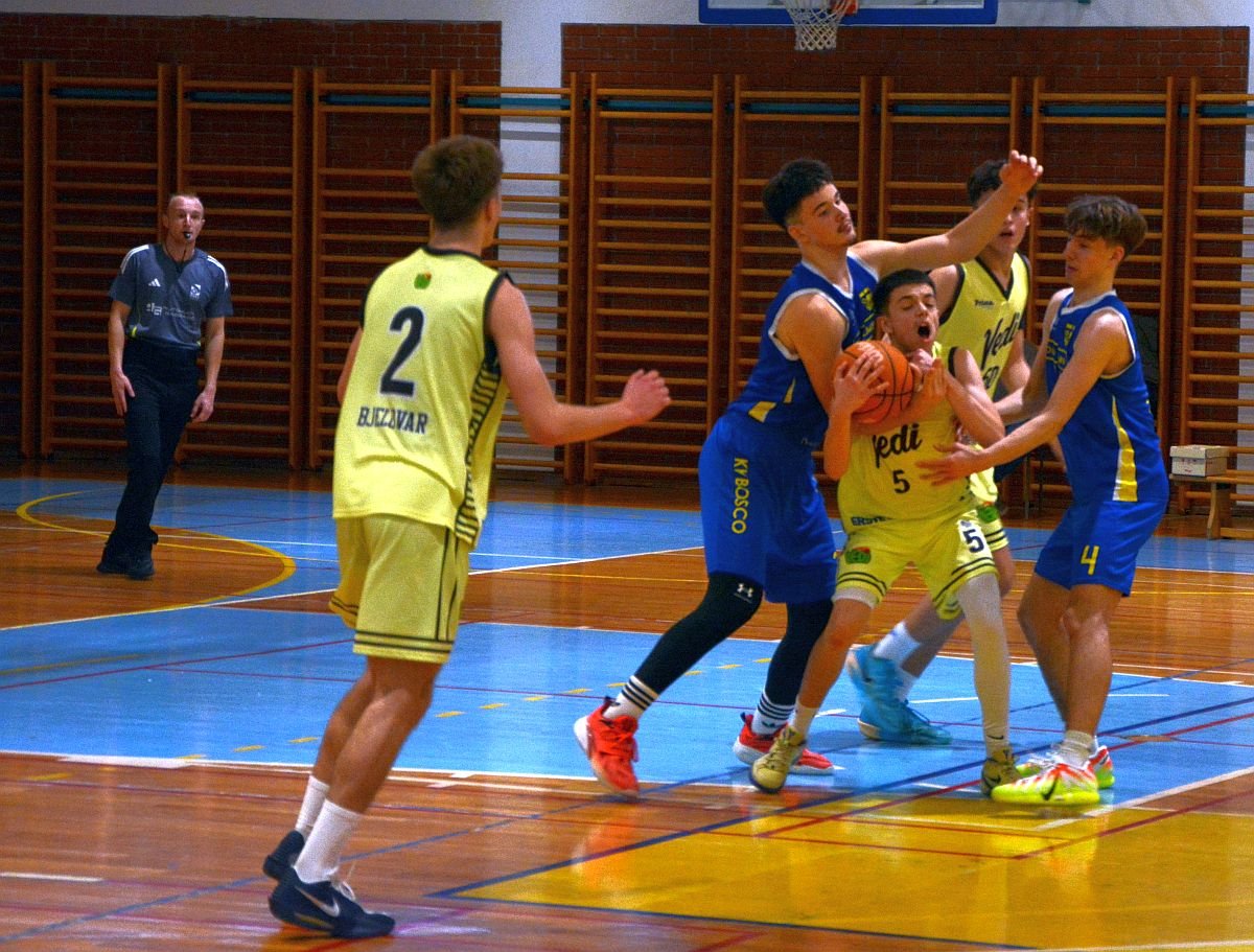Nakon pet teških susreta s jakim protivnicima u svom šestom pokušaju kadeti Vedija došli su do prve prvenstvene pobjede u Jedinstvenoj kadetskoj košarkaškoj ligi. Kao domaćini u dvorani bjelovarske Prve osnovne škole s pet pogodaka razlike pobijedili su zagrebački Bosco.