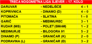 TREĆA NOGOMETNA LIGA SJEVER – 17. KOLO