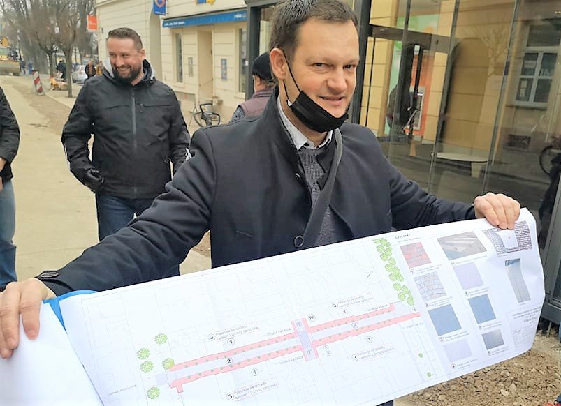 –Postavit ćemo tri različite vrste opločnika. Jedan je betonskog lučnog oblika koji će biti postavljen u središnjem dijelu u širini 6,7 metara, dok će uz objekte s lijeve i desne strane biti postavljeni crvenkasti betonski opločnik kombiniranog formata, a služit će kao zamjena za opeku. Treća vrsta opločnika bit će postavljena ispred Biskupije i oni su svijetlo sive boje – pojasnio je Barberić.