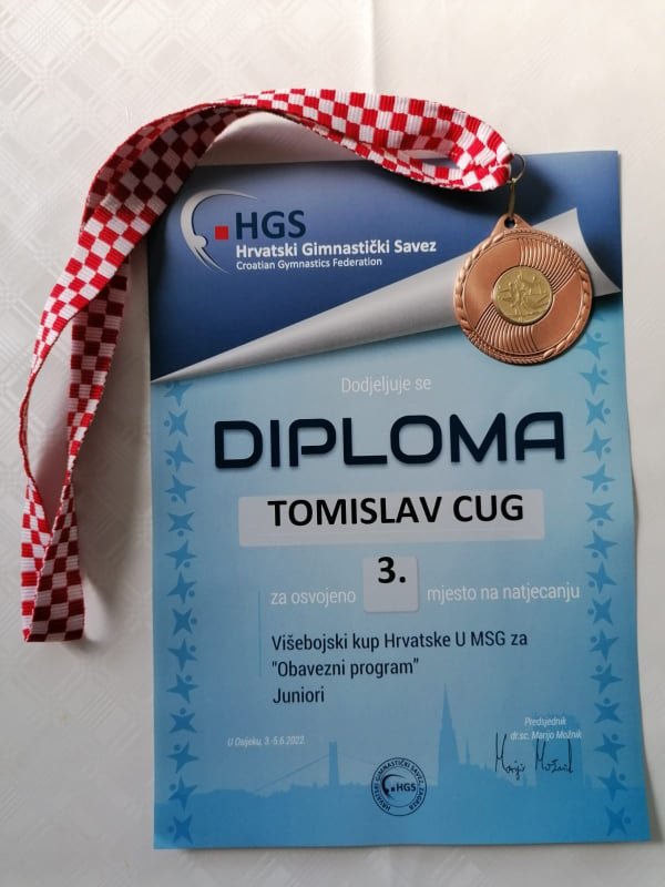 –Prošle godine sam bio državni prvak sa zlatnom medaljom, a ove godine sam treći što je i realan rezultat jer zbog brojnih obveza nisam bio dovoljno spreman za završnicu gdje su svi najbolji iz Hrvatske. Iskreno sam zadovoljan i s ovim rezultatom, Ova bronca uz prošlogodišnje zlato znači još jednu medalju za naš Gimnastički klub–rekao je Cug za Regionalni portal Bjelovar.live. (ika)