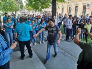 Sve današnje glumce predvodio je tata-mata festivala Goran Navojec, a cijeli događaj začinila je glazba bjelovarskog Puhačkog orkestra Glazbene škole Vatroslava Lisinskog. (ika)