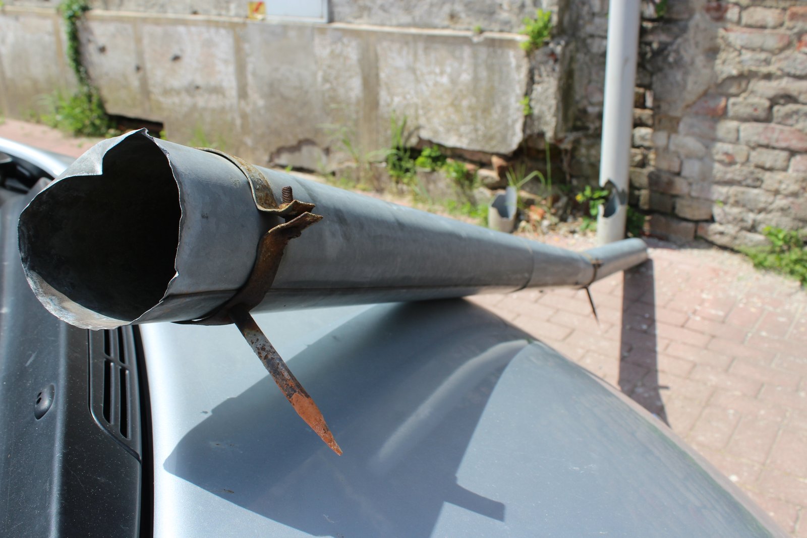 U nezgodi je oštećen Citroenu Picasso bjelovarskih registarskih oznaka u vlasništvu bjelovarske dogradonačelnice. S visine od najmanje dva metra na poklopac motora strovalila se cijev za odvodnju oborinskih voda. Riječ je o vertikalnoj cijevi koja je, prema svemu sudeći, za zid bila pričvršćena metalnim nosačima koji su se u jednom trenutku jednostavno odvojili od derutne zgrade.