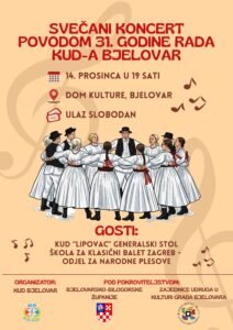 Svečani koncert povodom jubileja održat će se u nedjelju, 14. prosinca, u 19 sati u Domu kulture u Bjelovaru, a ulaz je slobodan za sve posjetitelje. Program donosi raznolikost hrvatskog folklora – od dječjih igara Bilogore, preko slavonskog kola i zagorskog drmeša, pa sve do plesova i pjesama drugih krajeva Hrvatske.