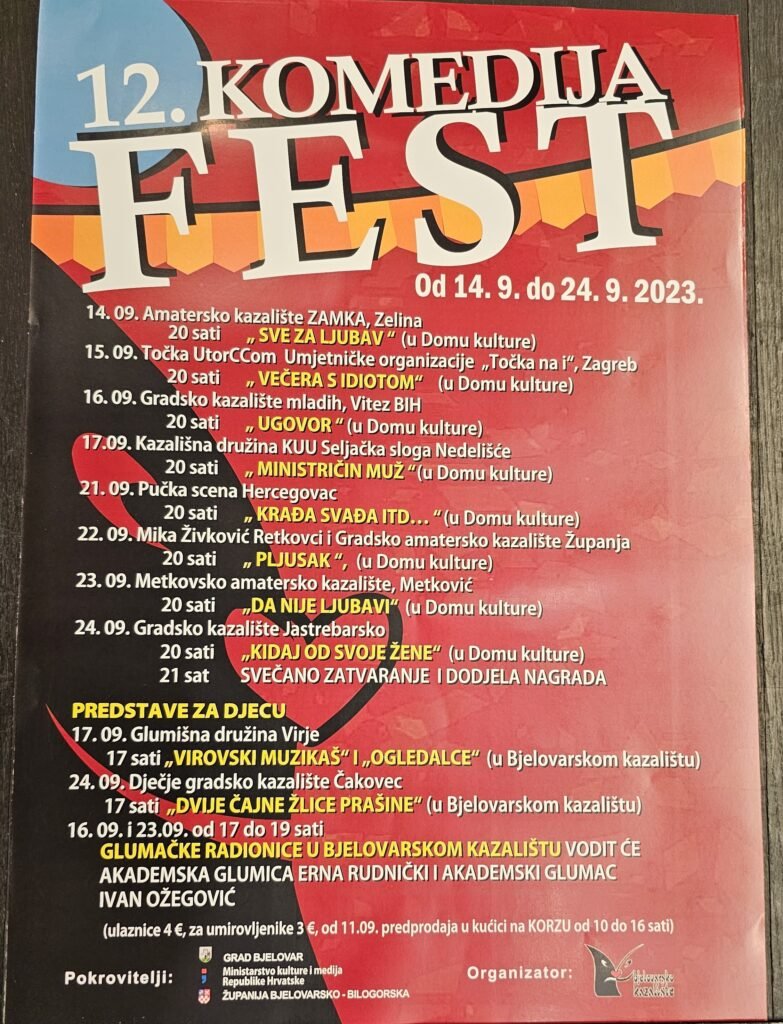 Prvi je na redu Komedija fest koji održava od 14. do 24. rujna, a sve predstave održavaju u Domu kulture.