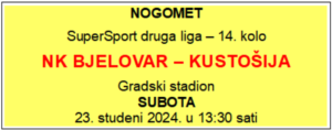Iako do kraja jesenskog dijela prvenstva imaju za odigrati još samo dva prvenstvena kola koja će oba odigrati na Gradskom stadionu, s Kustošijom u subotu u 13.30 i u nedjelju 1. prosinca u zadnjem kolu s Mladosti iz Ždralova u kojem će Mladost pred TV kamerama biti domaćin na Gradskom stadionu, nogometašima NK Bjelovara osim što se smiješi osvajanje jesenskog naslova prvaka SuperSport druge NL, što bi bio ogroman klupski uspjeh i najava bijega u prvoligaško društvo, nogometaši NK Bjelovara već sad se mogu hvaliti i govoriti kako su napravili najveći uspjeh u bogatoj klupskoj povijesti.