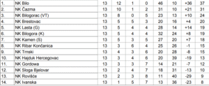 Za razliku od vrha ljestvice, na začelju je poprilična gužva. Brigu o fenjeru tokom zime voditi će Ivanska koja ima bod manje iza predzadnjeg Rovišća i dva boda manje od Sloge koja će prezimiti na 12. mjestu.